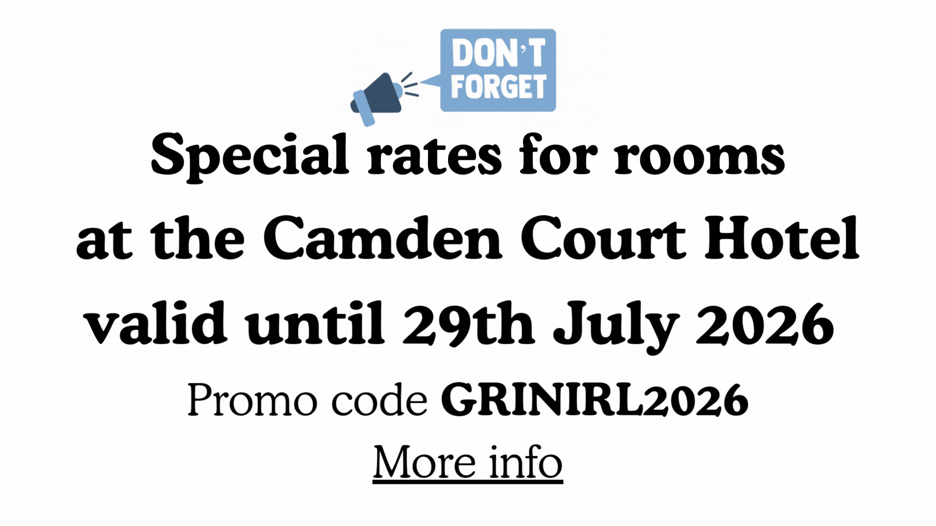 These rates are valid until 29th July. Please use the promo code GRINIRL2026 when making your booking.